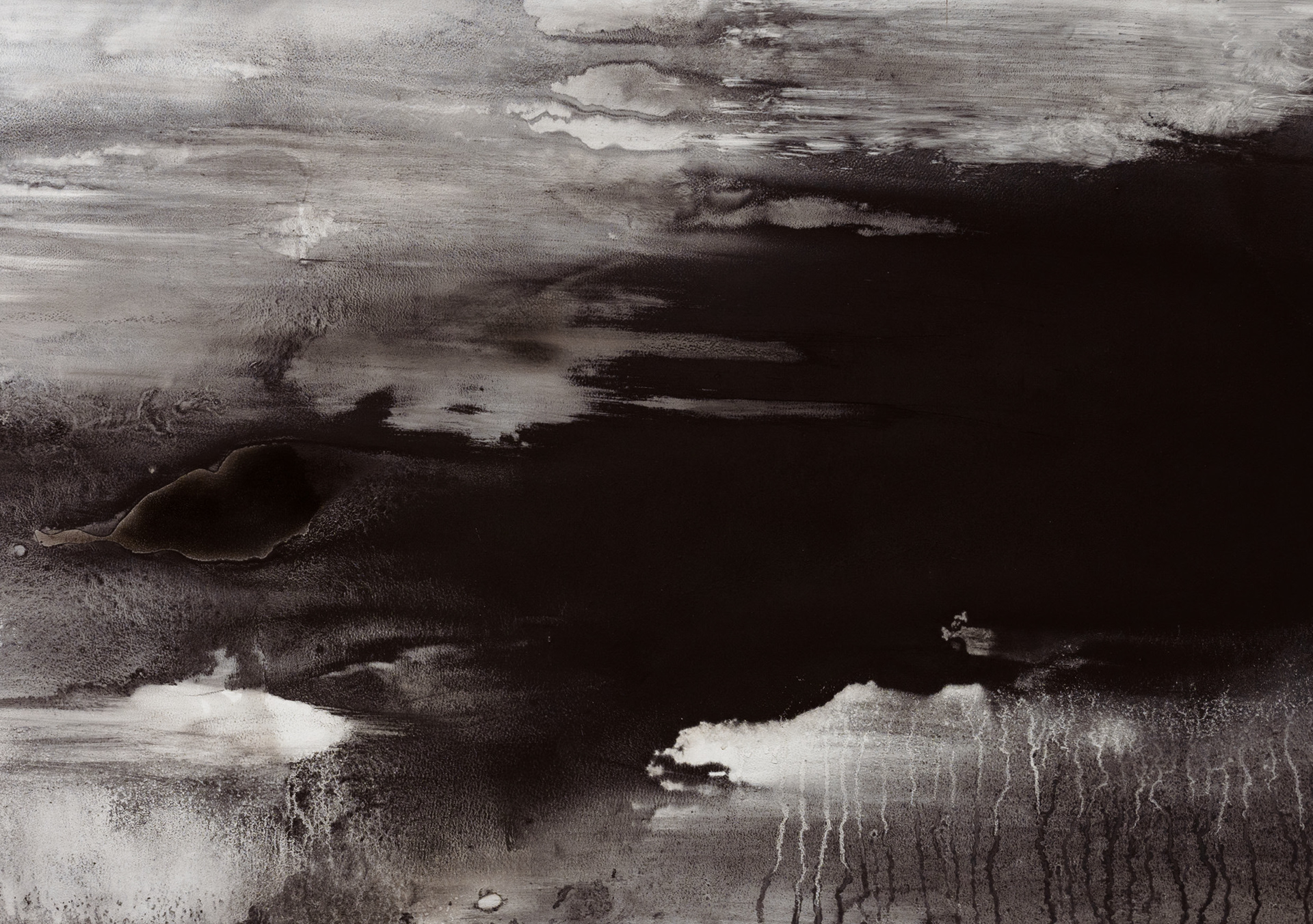 In certain traditional paintings, water, in its most mysterious form—vapor—shapes nature. The clouds envelop the mountains, temporarily taking on their form, and the mountains merge into the mist. This can also be found in the Romantic movement in the West, particularly in the work of William Turner, a sensitive interpreter of the poetics of the sublime. His paintings capture those suspended instants in which all natural elements interpenetrate and release their forces. The paintings and drawings of Ariane Monod are traversed by that same synergic impulse, made manifest through precise technical choices.