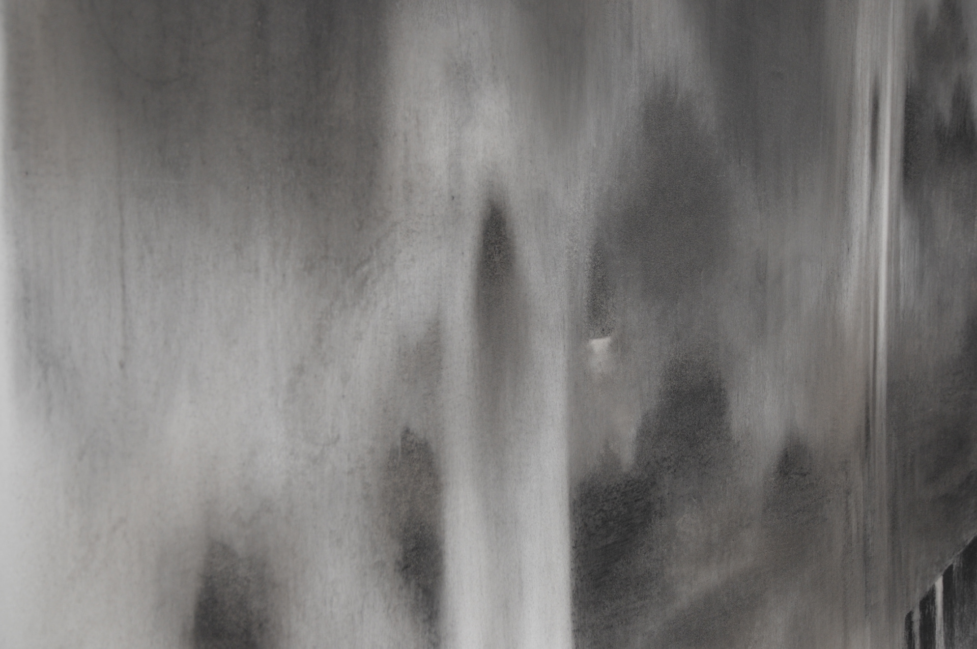 L'éphémère insaisissable du songe se matérialise littéralement dans les interventions murales d’Ariane Monod. En ses esquisses murales, le fusain y laisse la trace passagère du mouvement qui prend corps brièvement pour se transformer en une sorte de paysage onirique aux confins de l’abstrait et du figuratif. Traçant ses compositions à même le mur, Ariane Monod exploite les potentialités du fusain sec et gras qu’elle utilise tant sous forme solide que dilué dans l’eau. Elle module la densité des noirs pour faire naître des zones organiques de pénombre ponctuées d’éclaircies. Ces tracés voués à disparaître ne l’effraient pas; au contraire, l’artiste apprécie vivre cette expérience s’inscrivant dans un temps et un lieu définis, où l’improvisation s’emplit d’introspection.