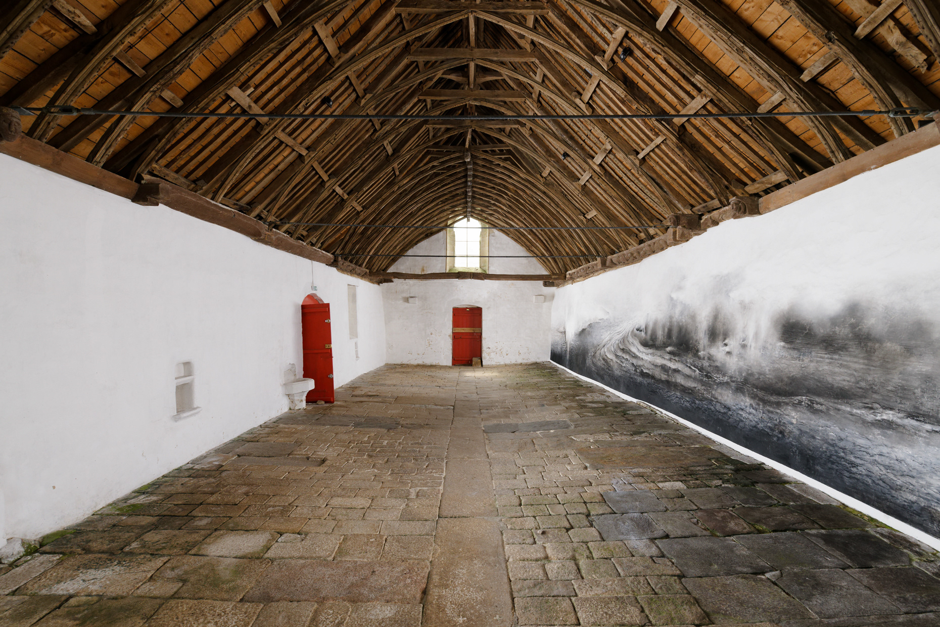 Esquisse murale / Ariane Monod, Chapelle de la Trinité, Castennec, Pluméliau-Bieuzy (fusain et chaux, 3,10m x 17,50m, 2024)